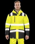 Two layer mechanical yarn fabric, Mid Layer: EN343 3:1 Waterproof to 8000mm, breathable to 3000g and windproof TPU membrane, Tear release and part elasticated cuff, Reflective print body bands, Adjustable foldaway hood, stand up collar and hangtag, Tear release front pockets and tear release stormflap, Zipped chest pockets and inside pocket, Taped seams, Conforms to EN ISO 20471:2013+A1:2016 Class 2, Orange also conforms to RIS-3279-TOM