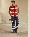 Heavy duty rip stop Hi-Vis tool vests with mulitple pockets, Two double pockets can be accessed from top with zip and hook and loop closure, Double D rings, Chest pockets with flap closure and pullers with ID card display, Adjustable hem with two press buttons, Conform to EN ISO20471:2013 Class 2, Large decoration area on the back, Also available with open mesh on the bottom providing a better breathability and comfort